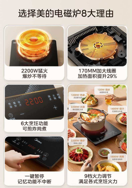 An induction cooker is a high-efficiency and energy-saving kitchen appliance based on the principle of electromagnetic induction. It generates eddy currents at the bottom of iron cookware through a high-frequency alternating magnetic field, achieving rapid heating of food and is widely used in modern kitchens. The core features of induction cookers include fast heating, energy saving, high safety, convenient operation, and multifunctionality.